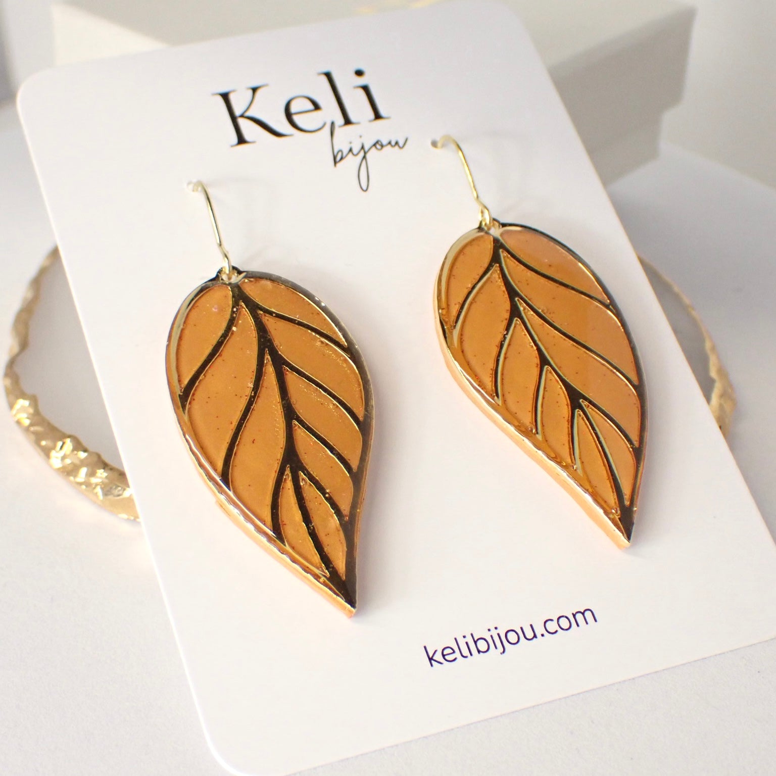 Persefone Amber är ett par effektfulla och vackra örhängen som fångar ljuset i varje rörelse. Den organiska bladformen ger ett sofistikerat intryck, medan de redan linjerna skapar en modern, tidlös elegans. Perfekt när du vill bära något som både känns starkt och subtilt på samma gång. Persefone finns i flera olika färger och har detaljer och guldpläterade krokar i nickelsäkert rostfritt stål, de är lätta i örat trots storleken och alla örhängen är omsorgsfullt skulpterade i polymerlera.