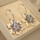 Vackert vita örhängen med gnistrande snöflingor och silverpläterade, nickelsäkra hoops. Handgjorda, eleganta och fjäderlätta.