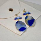 Lapis Crystal Oval Drop är statementörhängen som fångar alla blickar. En klarblå connector i facettslipat glas bryter ljuset på ett magiskt sätt, medan det ovala hänget i blåmelerad polymerlera ger en organisk kontrast. Kombinationen av det gnistrande glaset och den handgjorda polymerleran skapar en lyxig och unik känsla. Perfekta för dig som vill göra entré. Guldpläterat stål och nickelfritt material.