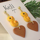 Ett par handgjorda örhängen som förvandlar julens mest klassiska bakverk till konstnärliga miniatyrer. Varje pepparkaka och lussekatt formas och målas för hand i polymerlera för att efterlikna den nygräddade ytan. Nickelsäkra och guldpläterade stiftörhängen i stål. Ett varmt, detaljrikt och charmigt smycke med julkänsla i en annorlunda design.