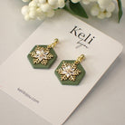 Eira Forest förenar naturens djupgröna nyans med skimrande guld. De guldpläterade, nickelsäkra krokarna gör örhängena behagliga och tidlöst vackra. En modern klassiker som passar lika bra till stickad tröja som till julfestens klänning.