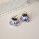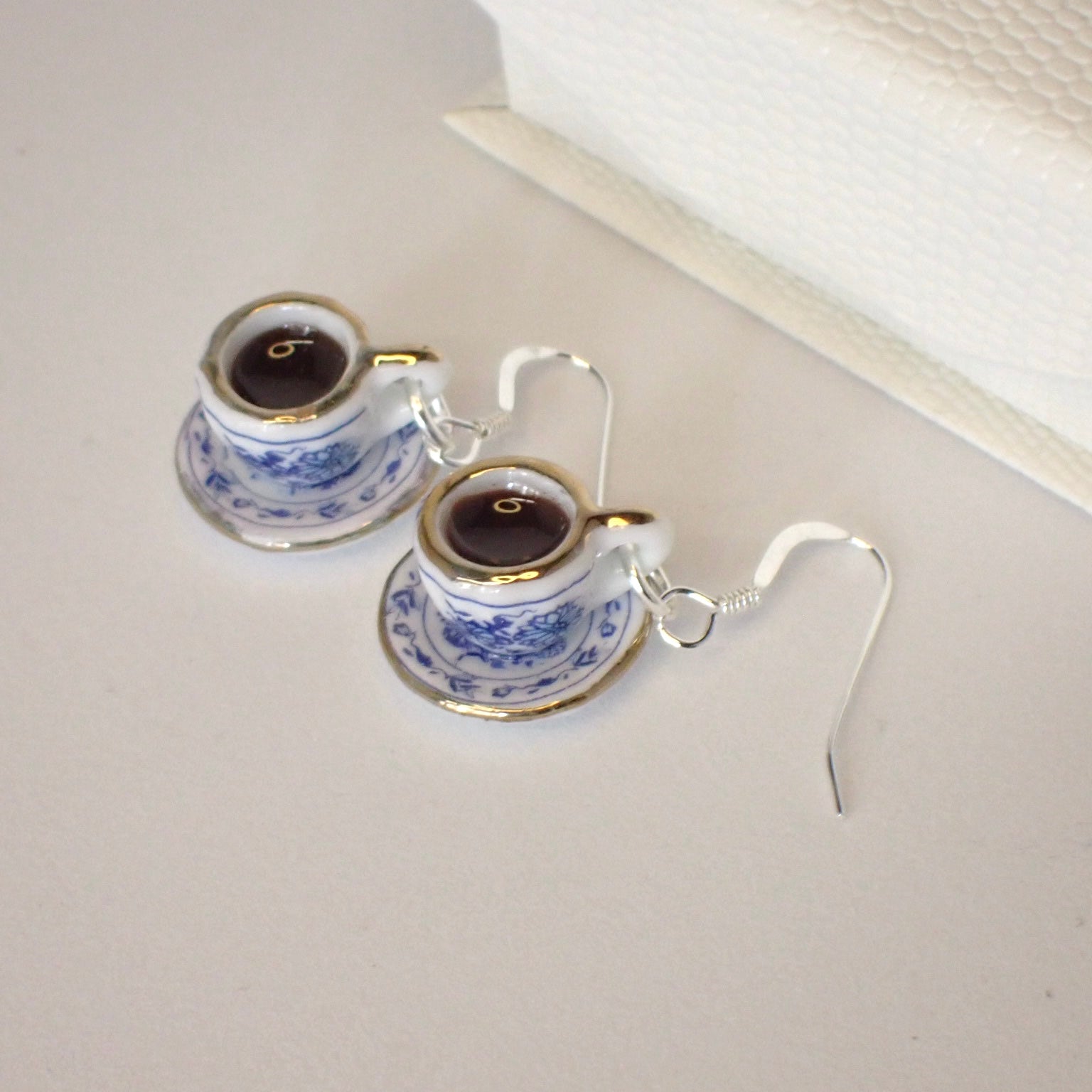 För kaffeälskaren och samlaren av vackra detaljer – dessa handgjorda örhängen föreställer små kaffekoppar med klassisk blå dekor på sina matchande fat. Varje kopp och fat är olika utformade, vilket gör varje par helt unikt. Örhängena väger cirka 2 gram styck och mäter runt 15 mm. Tillverkade i nickelsäkra material med krokar i äkta sterlingsilver 925. Ett smycke som hyllar svensk fikatradition, design och den lilla stunden av vardagslyx.