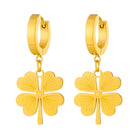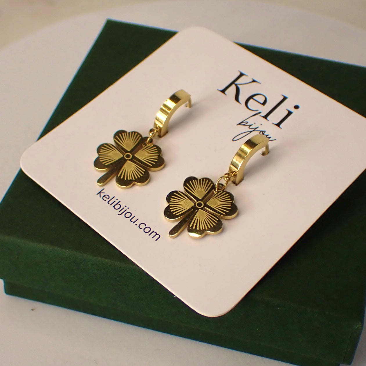 Stilrena örhängen – lätta och bekväma att bära. Material: rostfritt stål, 18K guldplätering, nickelsäkert, vattentåligt. Hänge 1.5 × 3.4 cm. Design av Keli bijou – hållbart, nickelsäkert och lätt att bära.