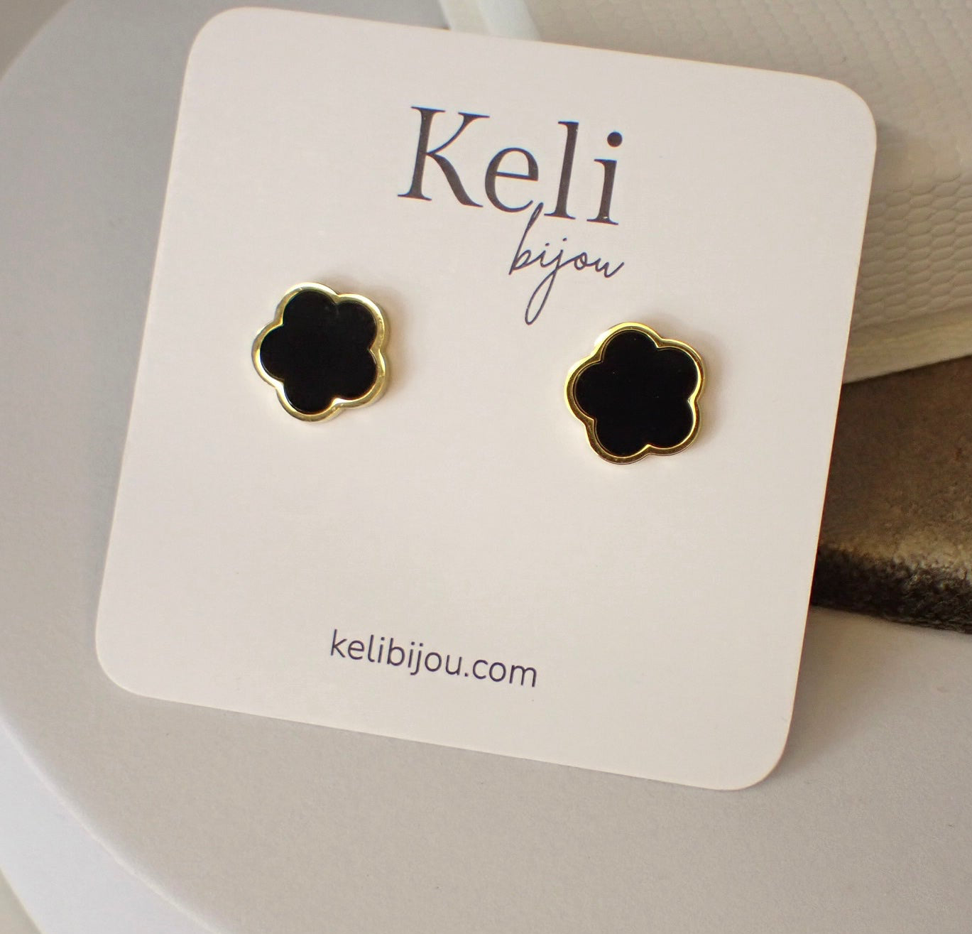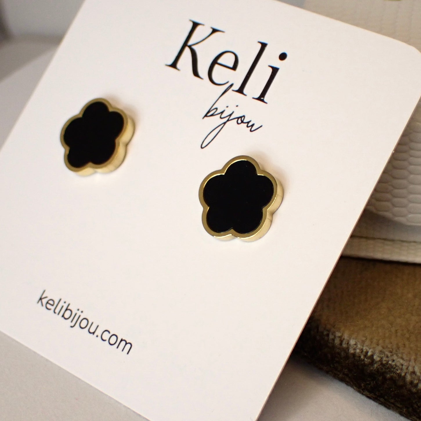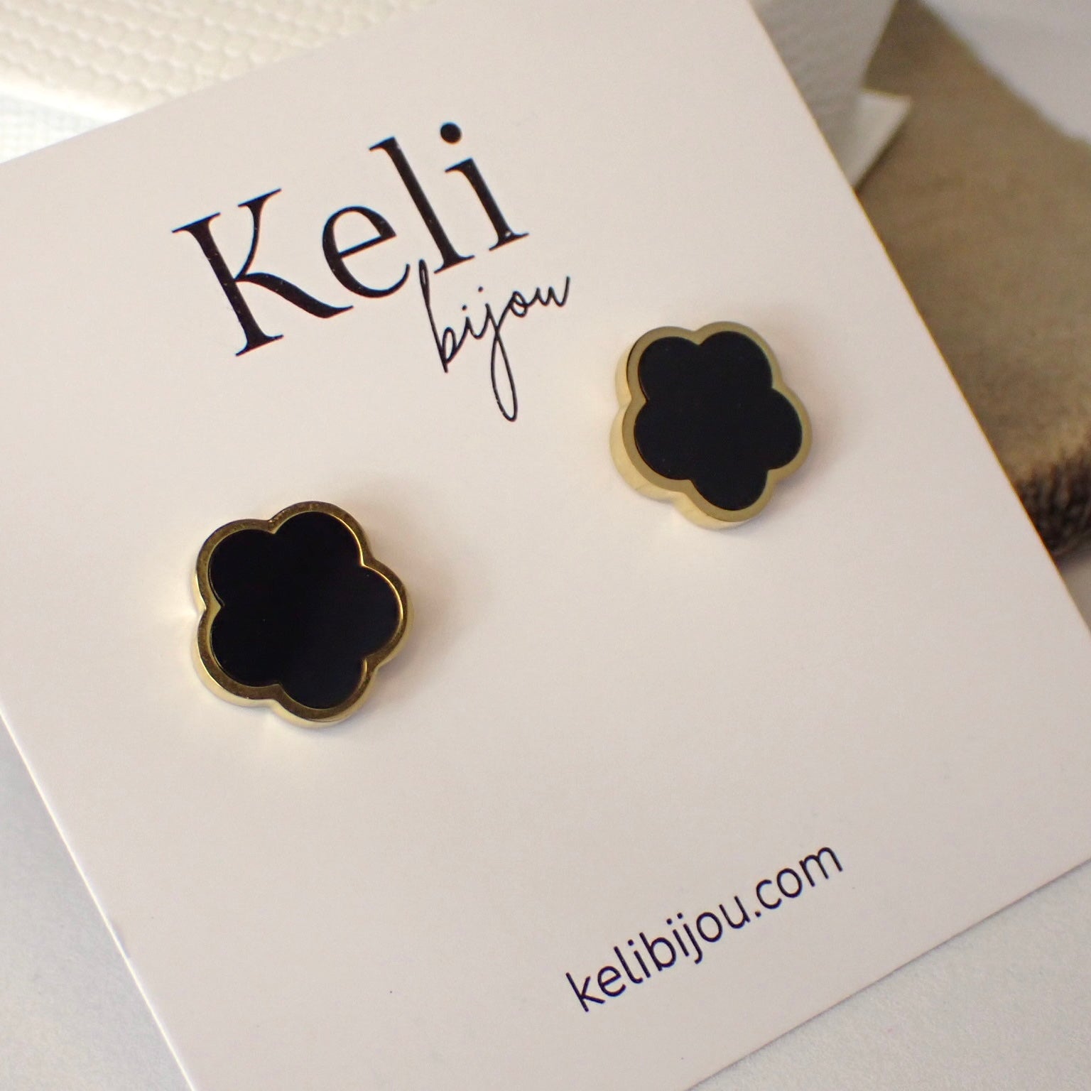 Stilrena örhängen – lätta och bekväma att bära. Material: rostfritt stål, 18K guldplätering, nickelsäkert, vattentåligt. Hänge 1.3 × 1.3 cm. Design av Keli bijou – hållbart, nickelsäkert och lätt att bära.
